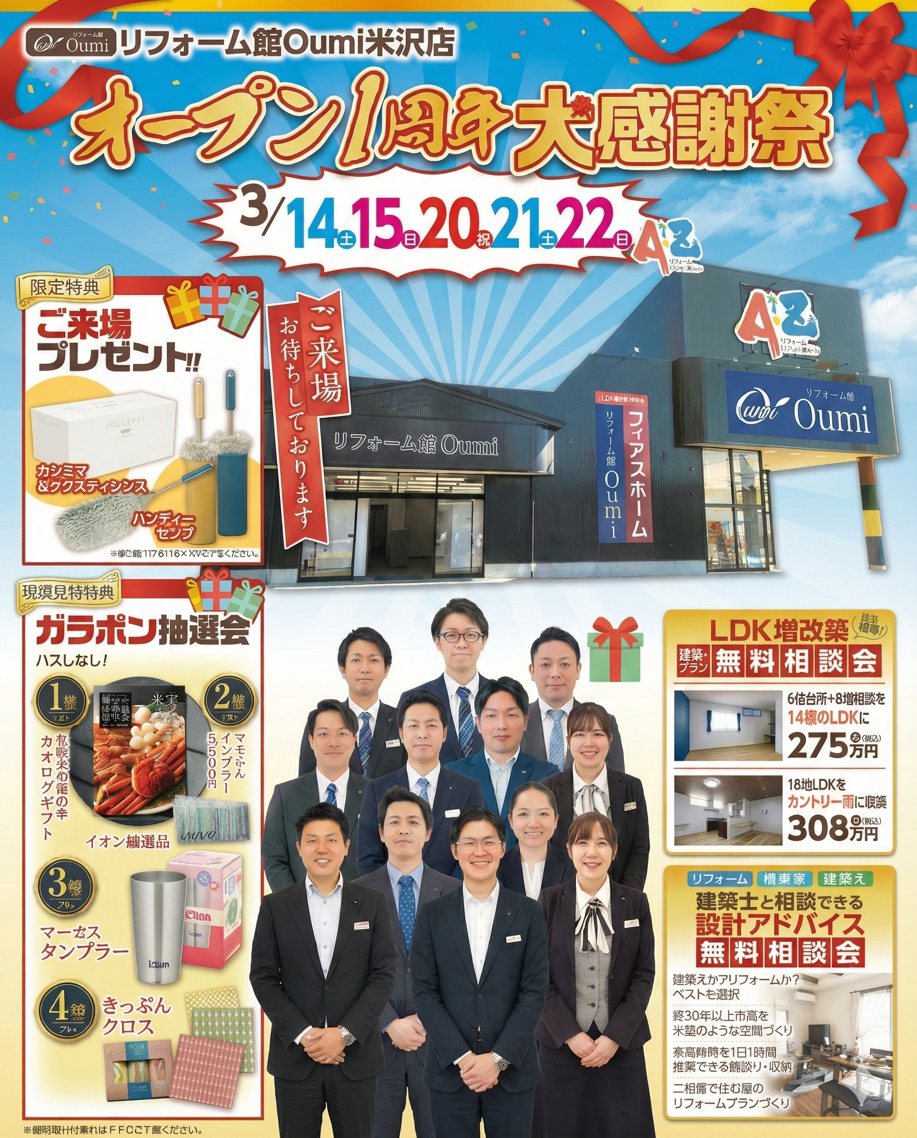 リフォーム館Oumiは山形県内に4店舗。広い空間の中に商品を一堂に展示しており、全ての住宅設備メーカーが揃います。施工事例ブースも完備で、リフォームの具体的なイメージが広がります。山形のリフォームは、リフォーム館Oumiにお任せください。