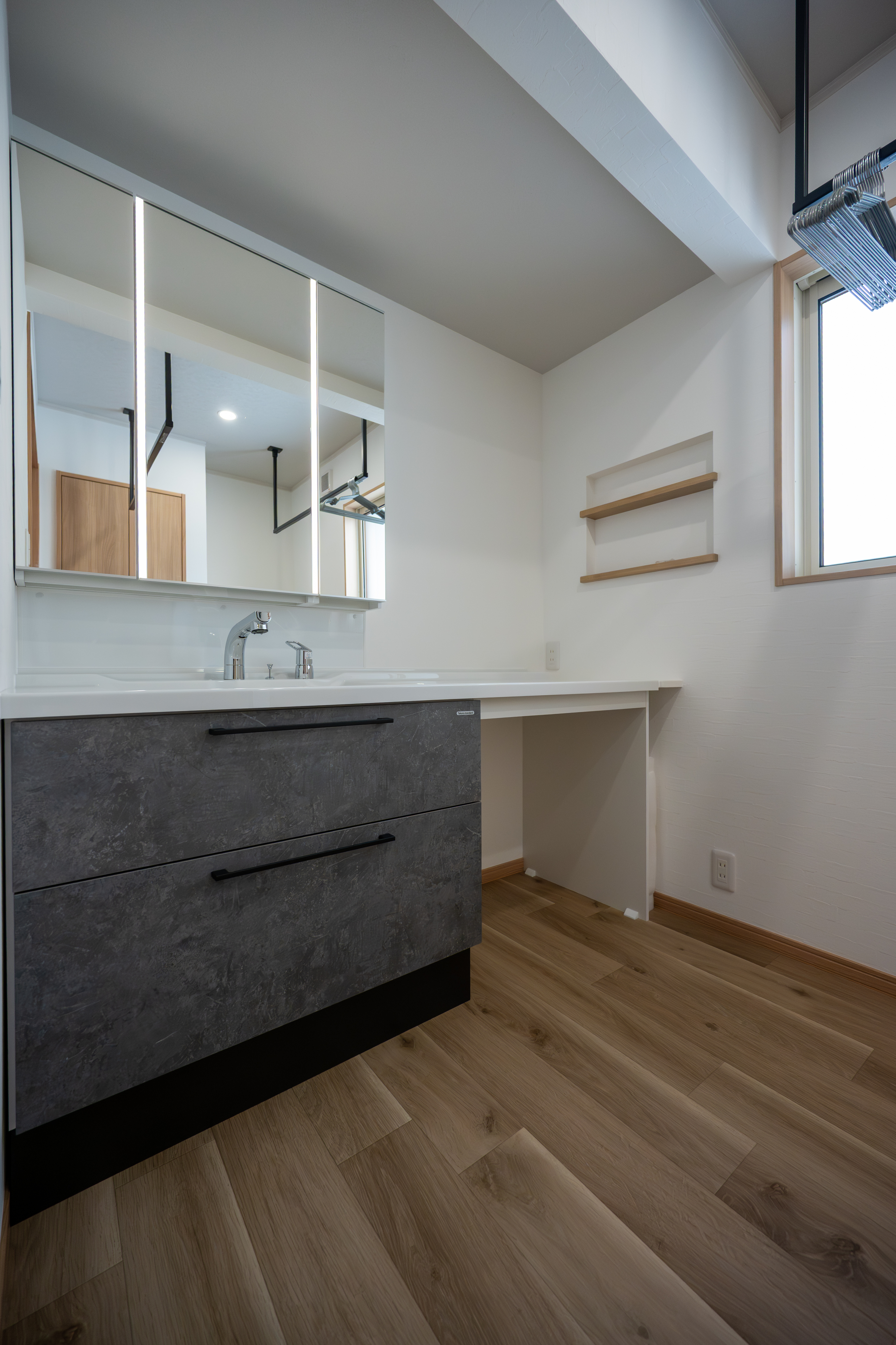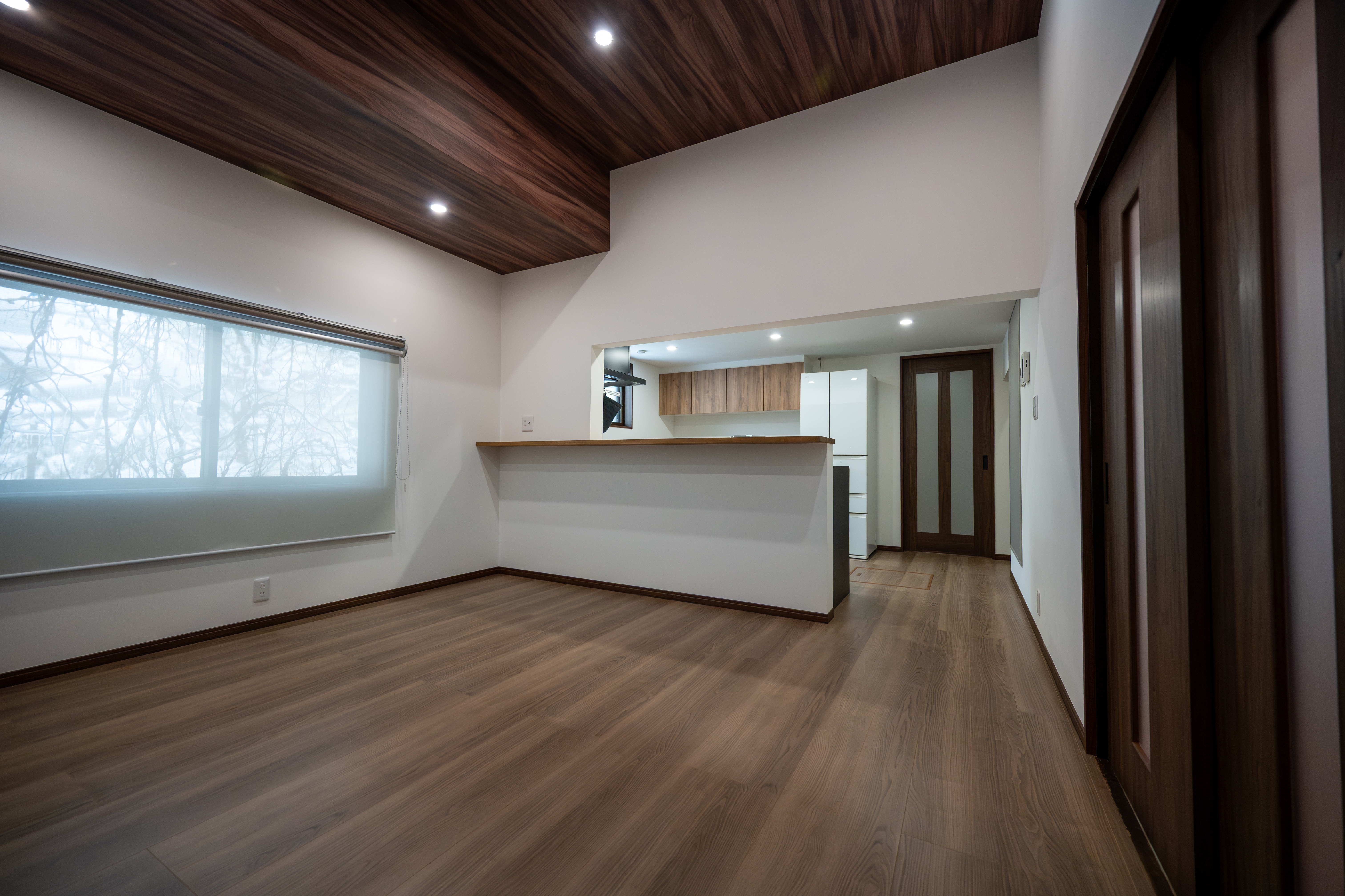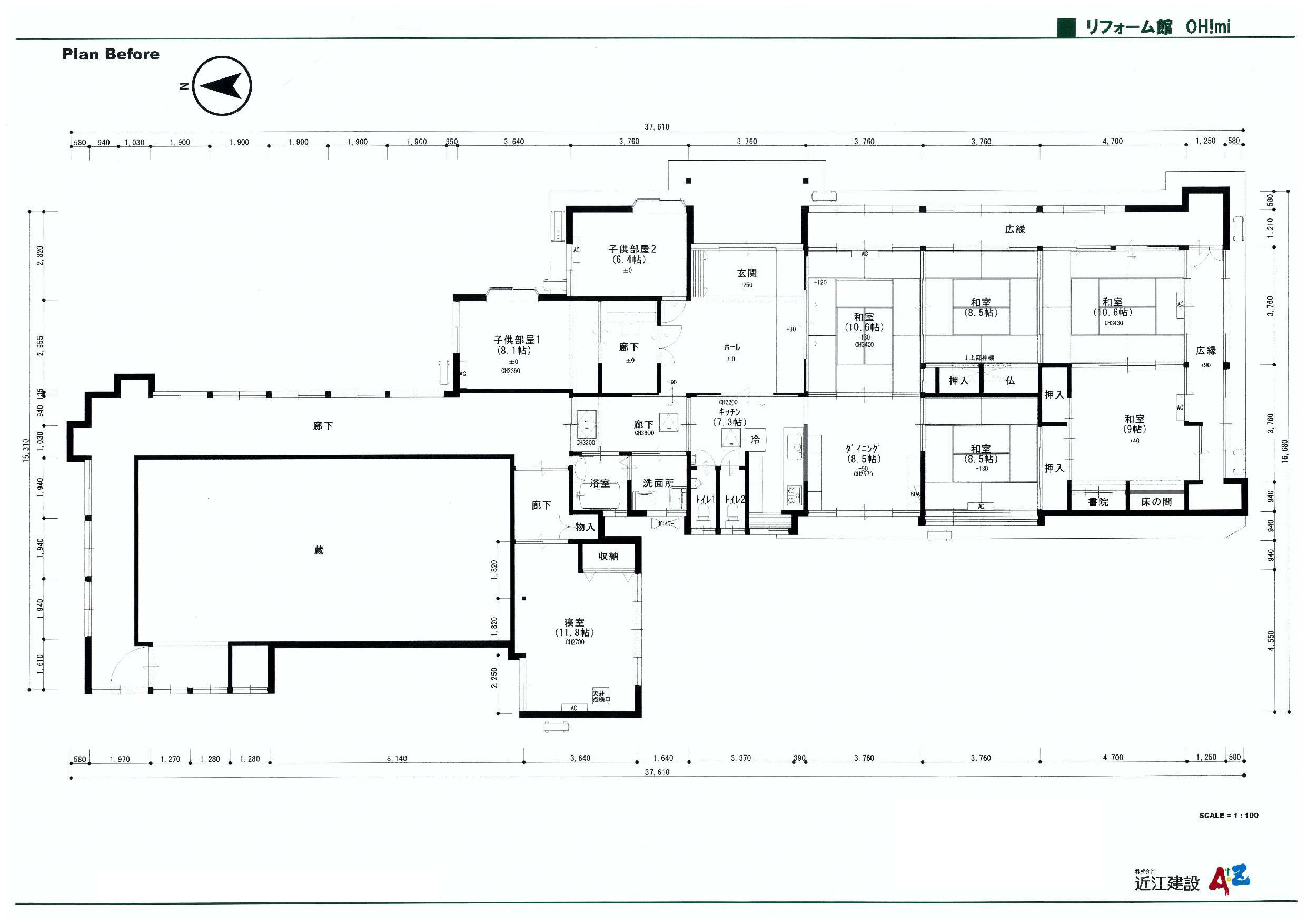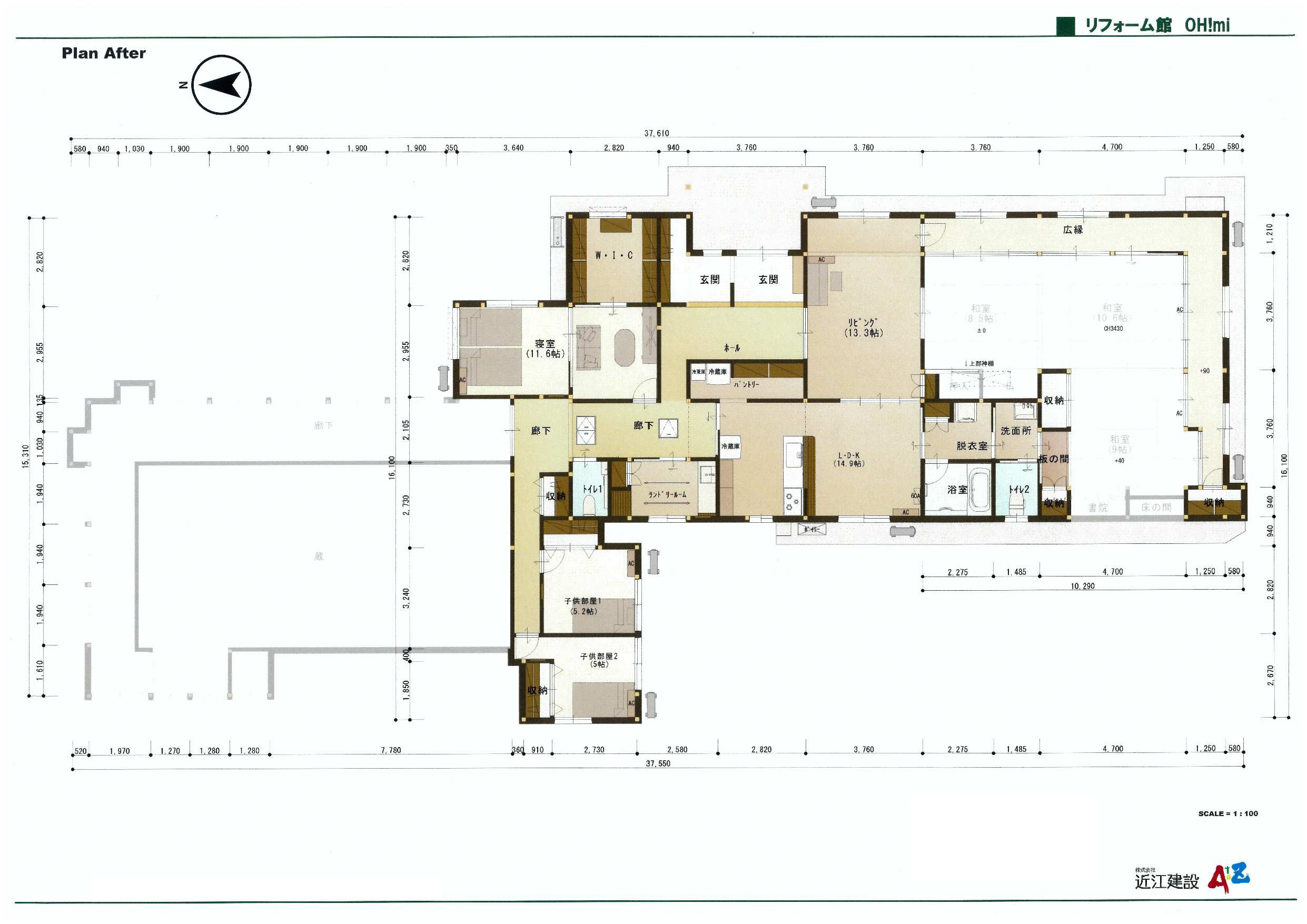 当初お客様は、寝室のすぐ隣がお蔵になっており、結露やカビ等でお悩みでした。また、ご家族でより良い生活ができるよう間取りの変更もご希望されておりました。そこで、まず結露が発生しにくいように断熱リフォームをご提案し、さらに各世帯のお部屋・トイレ・洗面スペースの間に共有スペースであるLDKを配置し、それぞれのプライバシーも、繋がりも大切にした間取りに変更しました。リビングは既存の梁と柱を残しながら、開放感のある高天井の良さを生かした古民家のようなコーディネートを考えてご提案させて頂きました。玄関も旅館のような重厚感のある雰囲気にまとめております。