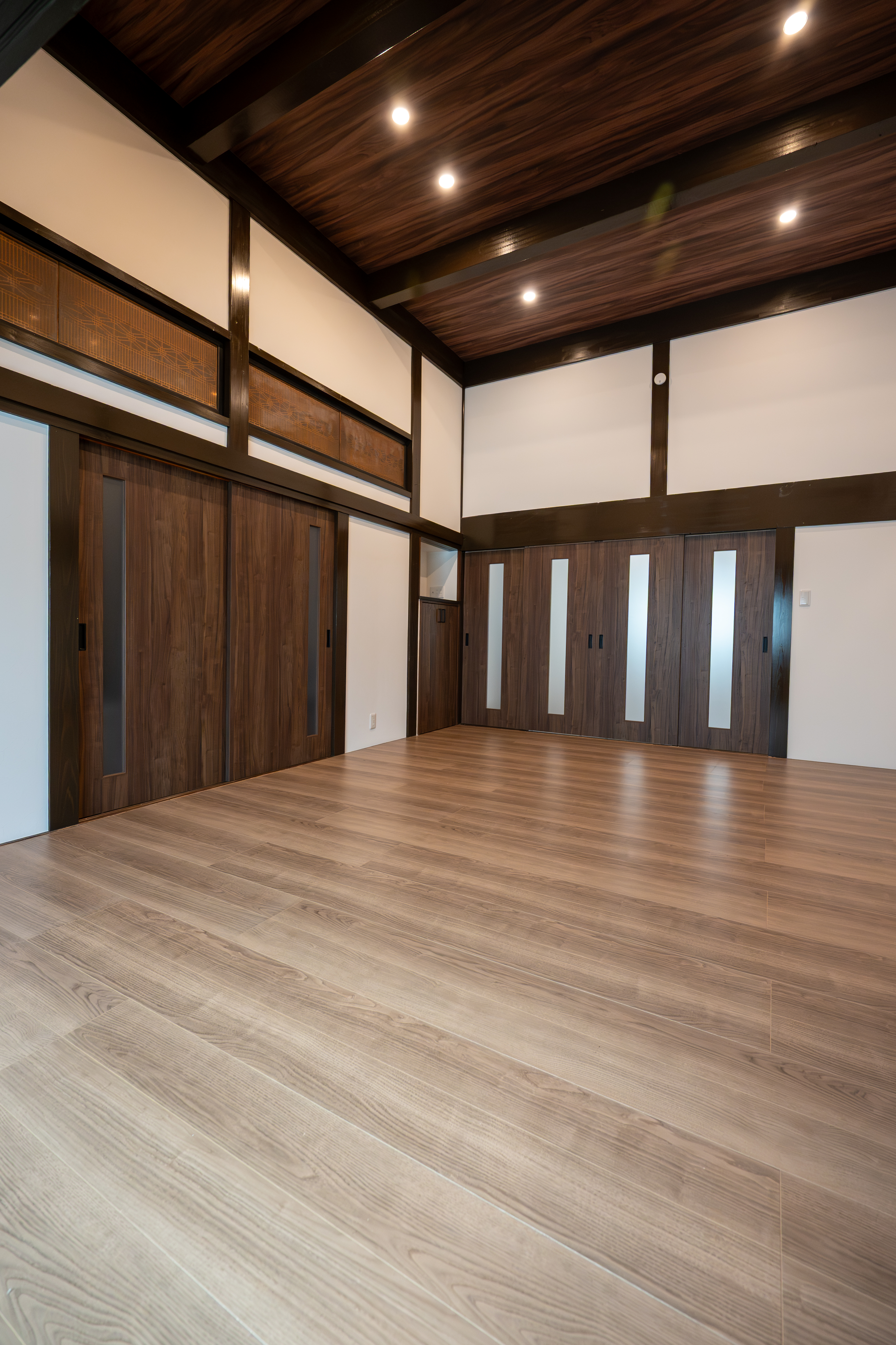 築50年の家を屋根・柱・外壁のみを残して大規模リフォーム。暗くて湿気っぽい、廊下が多い、使っていないお部屋もたくさんあった間取りを改装しました。廊下を無くし、窓も全面入替、断熱工事も行いとても暖かいお家に生まれ変わりました。