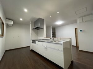 寒さと床の軋み・傾きが気になるということでご来店されたお客様。 寒さ対策として、玄関ドアや既存の窓をより断熱性の高いものに交換させて頂きました。床に関しては、工事個所の床を全面的に撤去し、ベタ基礎補強と床をフラットになるように調整させて頂きました。また、床材は一緒に生活するワンちゃんも快適に過ごせるように、“耐水・ペットフロア”を採用しています。 キッチンは壁付けから対面式に変更しており、さらに廊下をなくしてキッチンと繋げる間取りに変更することにより、今までよりもさらに広々と感じられるようになりました。